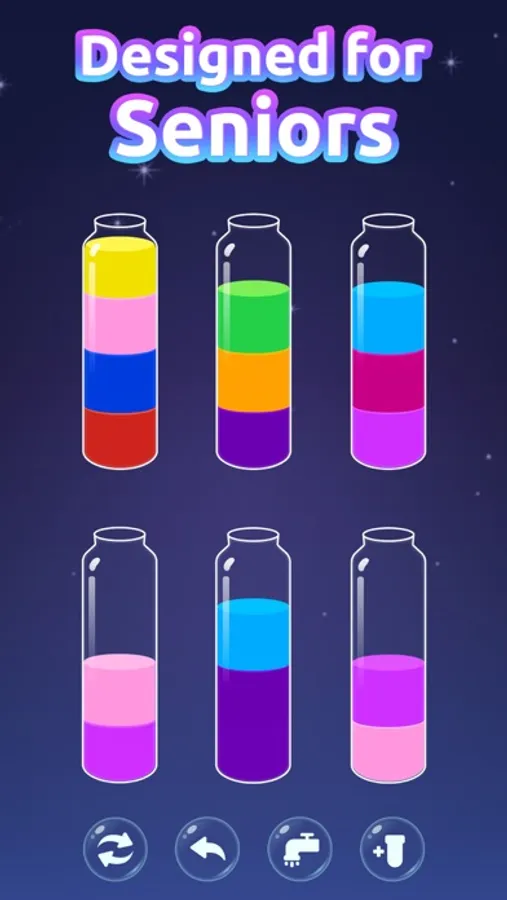 Vita Color Sort is an Exclusive Water Sort Puzzle Game for Senior Citizens. We are thrilled to present the water game that merges innovation with classic gameplay. Vita Color Sort offers large bottles and a user-friendly, eye-friendly interface, ideal for tablets and mobile phones of various sizes and shapes. Our goal is to provide a game experience that's relaxing and mentally stimulating with a focus on older adults.