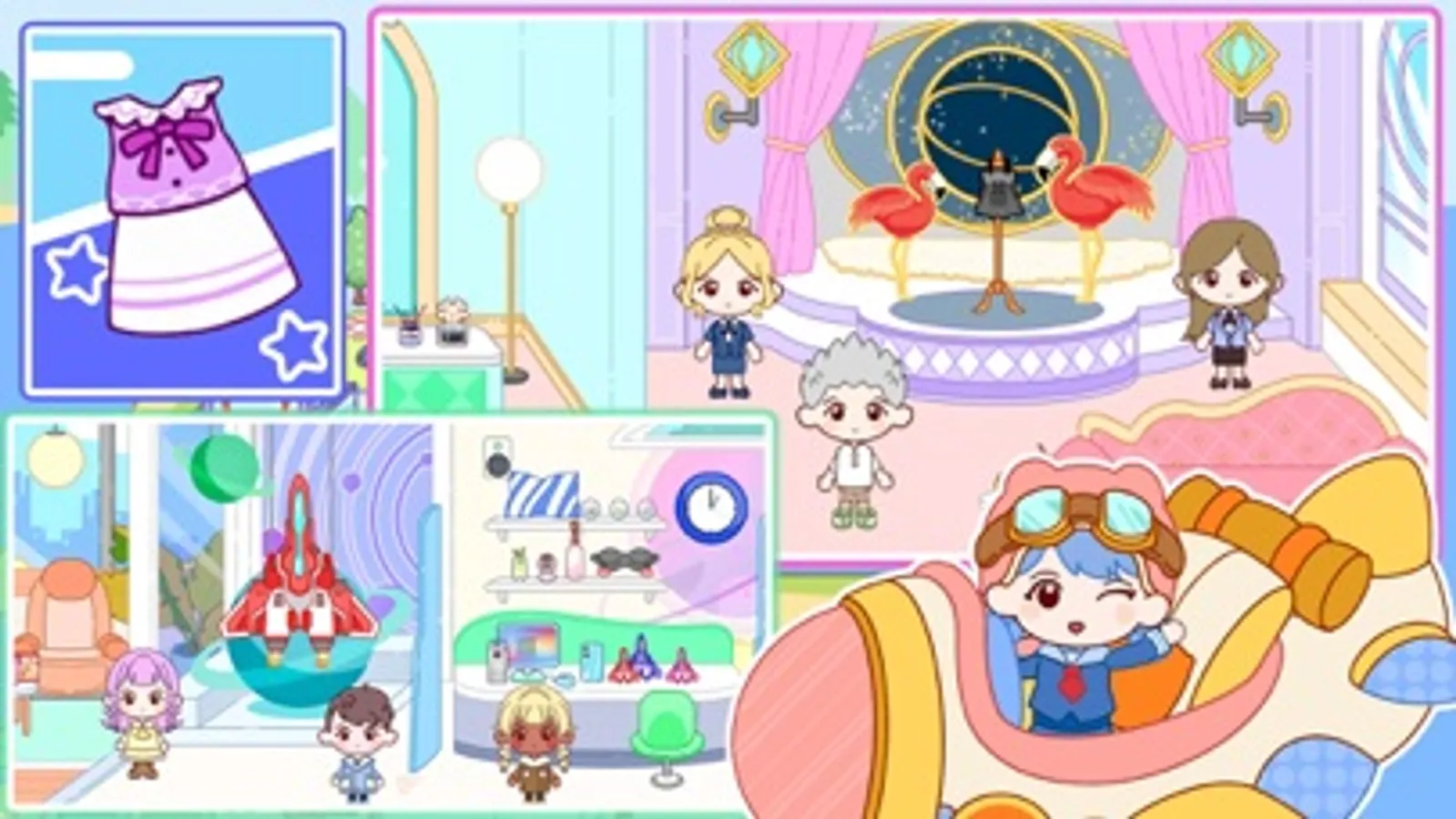-Choose the room and characters you want to play, such as a restaurant, beauty salon, school, etc.