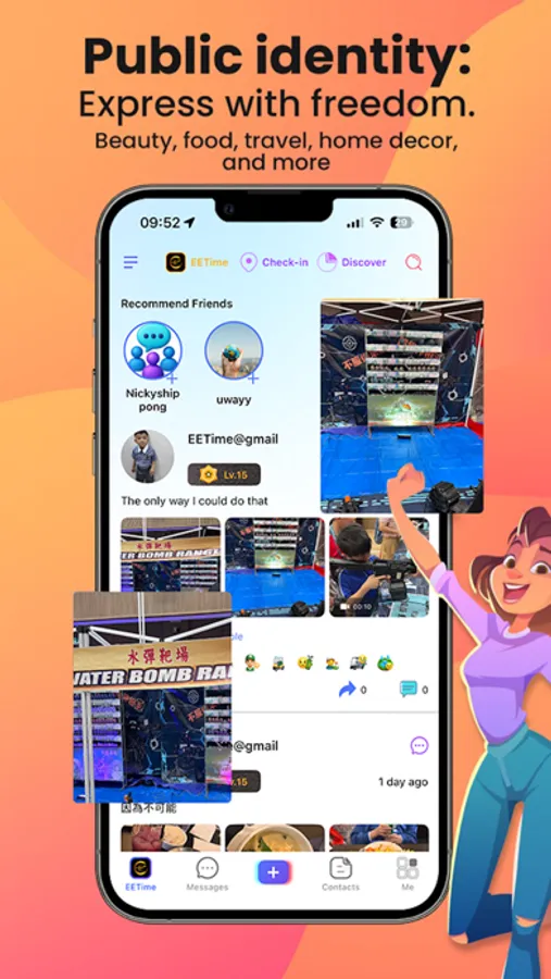 In a world filled with advertisements and noisy information on social media , EETime aims to completely revolutionize your social life by consolidating all social experiences in one place. Within the app, you have three identities: