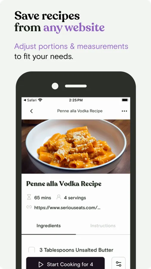 Say goodbye to messy sites overloaded with ads. With Souschef, you can bookmark and save recipes straight into your personal recipe keeper, linking them easily to your next grocery list. Souschef is the free recipe keeper designed to help you organize meals, shopping, and meal prep effortlessly.