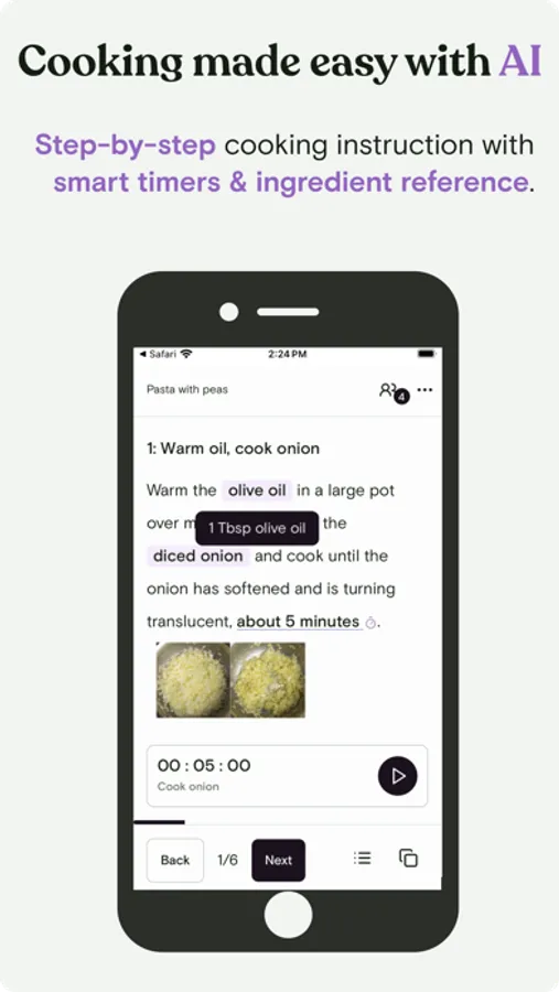 Step confidently into the kitchen. Cooking Mode keeps your screen awake, shows one instruction at a time, and triggers timers automatically. Your saved recipes, grocery list, and unit converter are just a tap away while you cook.