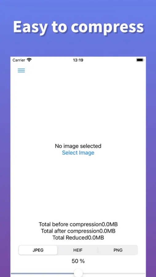 You can select JPEG, HEIF, or PNG. This allows you to compress in the format best suited to the file format you are using.