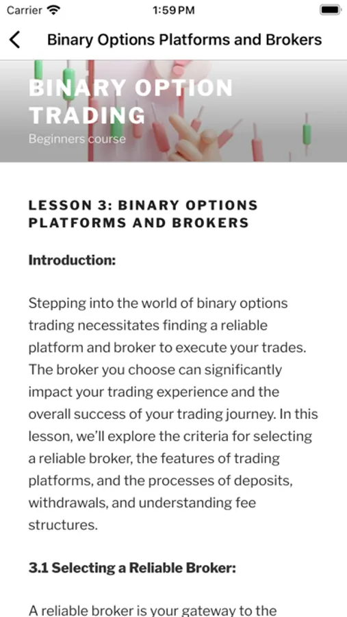 Trading is not just about numbers; it's an art, a science, and most importantly, a continuous journey of learning and growth. This app ensures you're equipped with the knowledge, strategies, and tools you need, serving as a springboard into the exciting world of binary options trading.