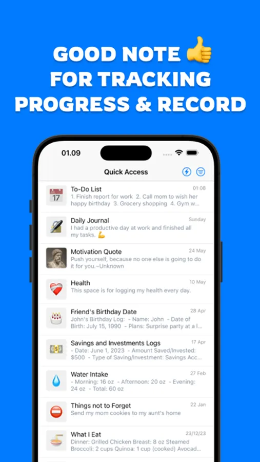 Comprehensive: Whether you need to remember a shopping list, document a meeting, or track your daily progress, Logs adapts to your needs.