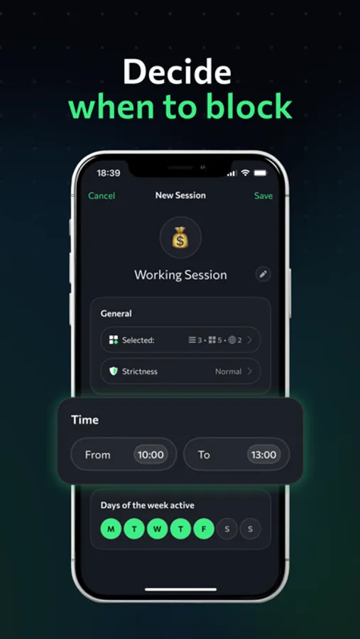 You can customize blocking schedules to activate on specific days or times. For instance, you can block social media apps during work hours, or ensure work-related apps are inaccessible while you're at home.