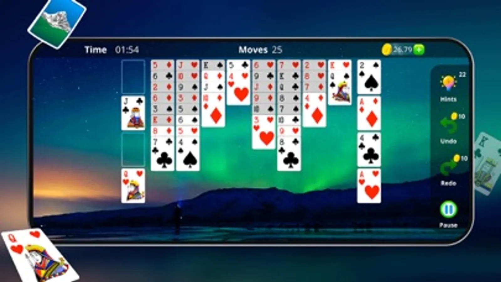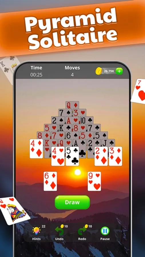 • Four classic solitaire modes: Klondike, Spider, Pyramid, and Free Cell