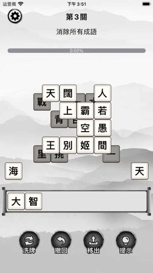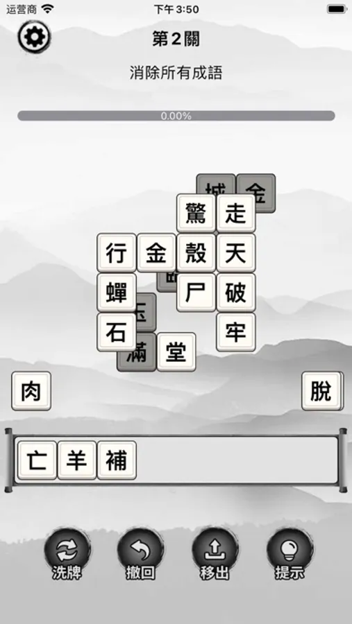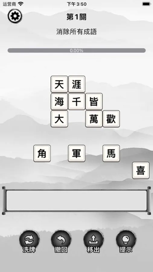 • 隨機打亂順序,沒有可以消除的成語時可以使用。