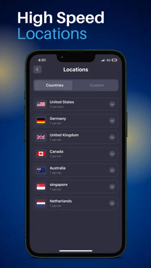 Seamlessly navigate through our user-friendly interface, featuring a sleek ON/OFF button for instant VPN activation. With just a tap, you'll enter a realm of unparalleled security.