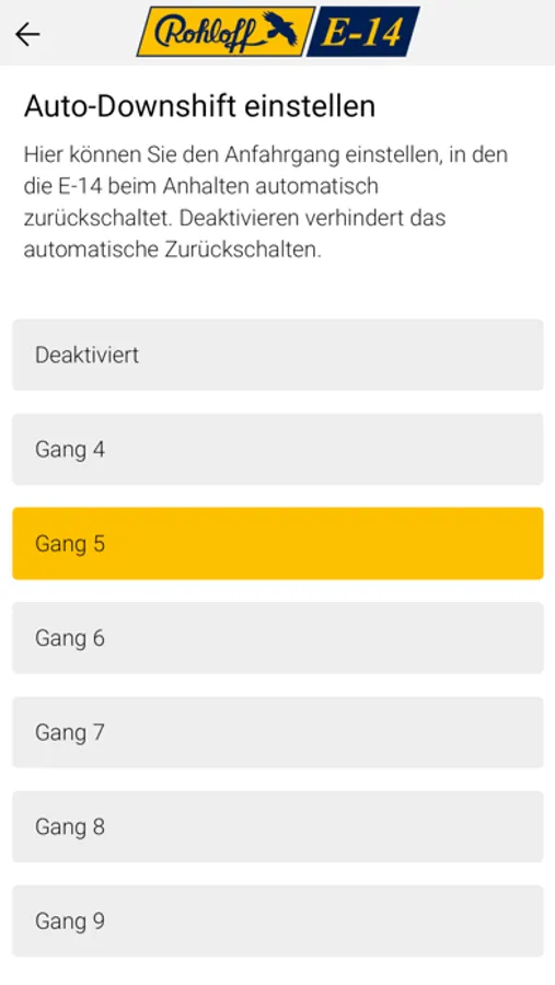 • Auto-Downshift (Gang 4 bis 9) einstellbar,