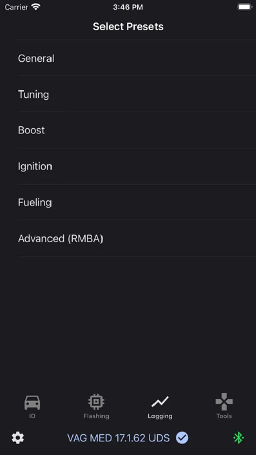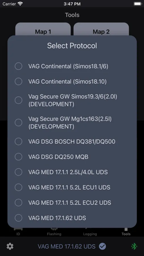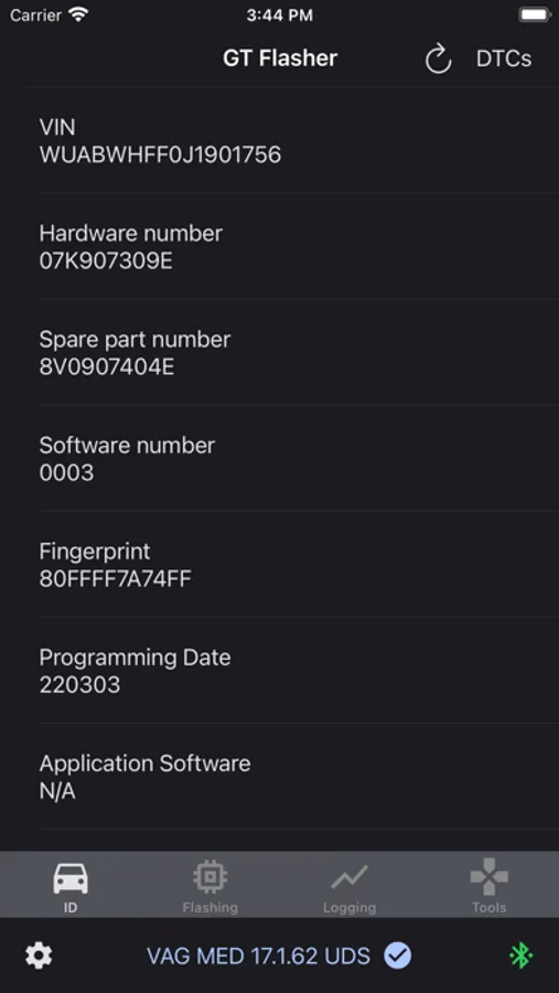 Application that allows users log and configure modern Engine and Gearbox management systems using the UDS protocol over OBD II using various open source OBD BLE devices.
