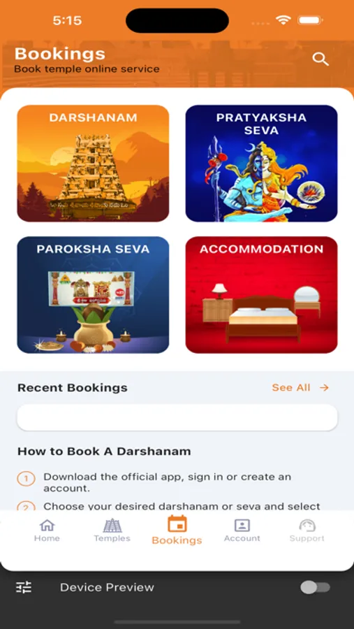 The app consists of Andhra Pradesh's temples information and online booking system for devotees making it super easy for people to book darsanam tickets, accommodations, pratyaksha seva, and paroksha seva tickets. Devotees can do it all by phone, so no more waiting in long lines. Devotees get to pick the date and time that works best for them and it helps the temple run things smoothly. It's all about making the spiritual journey more convenient and stress-free.