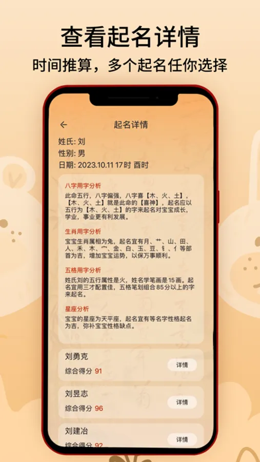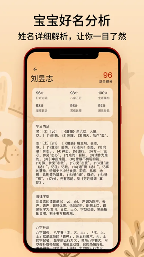 “诗经取名”遵循传统周易五行理论,精心筛选名字组合,海量名字供您取名参考。名字兼顾音、形、意以及文化印象,并提供专业的五行命理分析。独有的四维评分系统,让名字评分更加客观、全面。