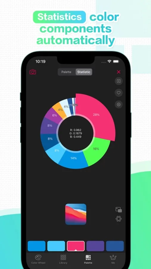 Show statistical data of various colors in the image in a more intuitive way in the form of charts.