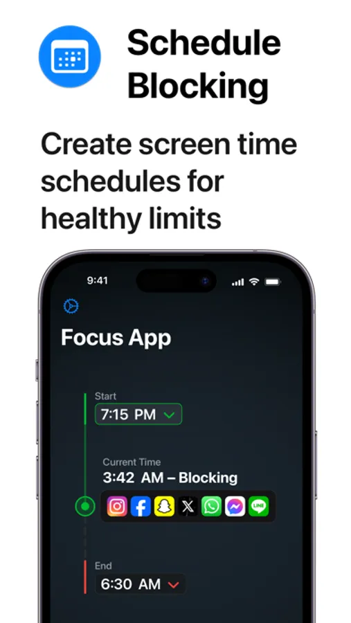 App Blocking: Select and block specific apps that tend to consume your time and attention. Customize your list to include social media, entertainment, or any other apps that distract you.