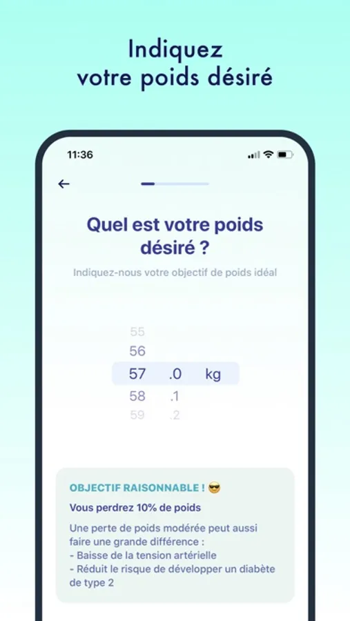 1. Indiquez votre objectif de perte de poids / répondez à quelques questions préliminaires