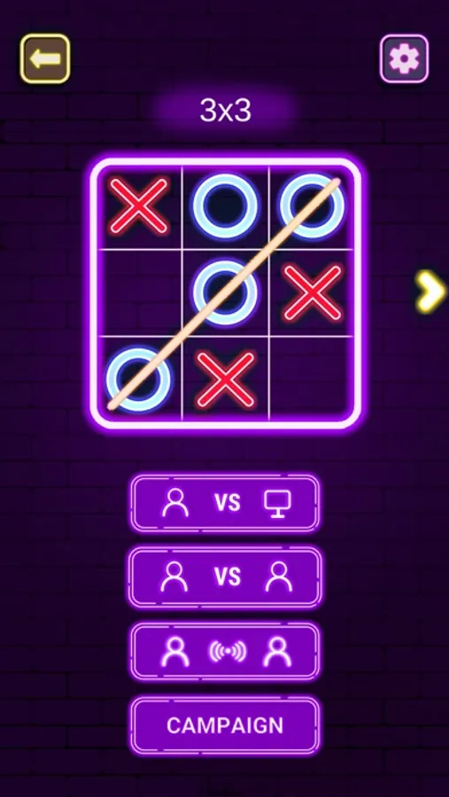 Experience the dazzling neon world of Tic Tac Toe. As you complete each mini-game, you'll unlock new levels, power-ups, new achievements.