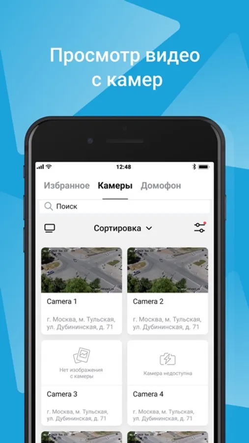 - Онлайн-просмотр городских и личных камер.