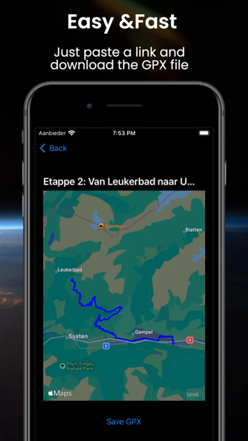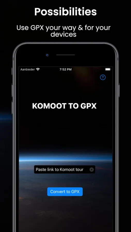 Easily convert any Komoot tour into the widely supported GPX file format. This universal format ensures compatibility with a multitude of GPS devices and navigation apps. Just paste a link to a Komoot tour and the app will convert it a GPX file which can be used anywhere.