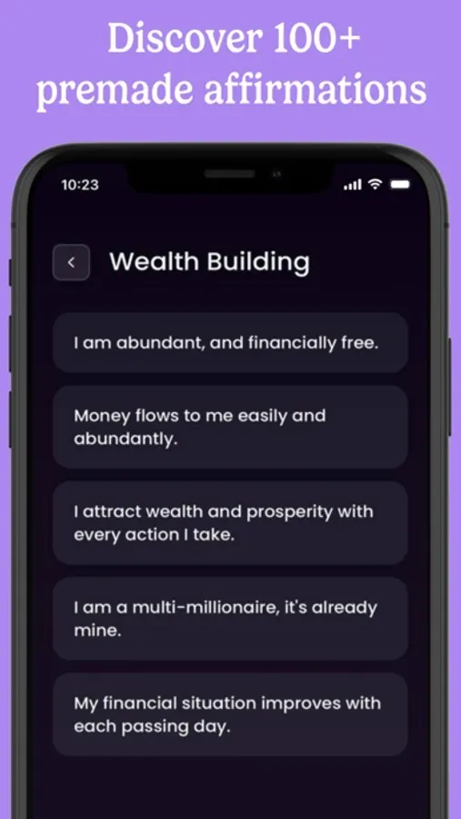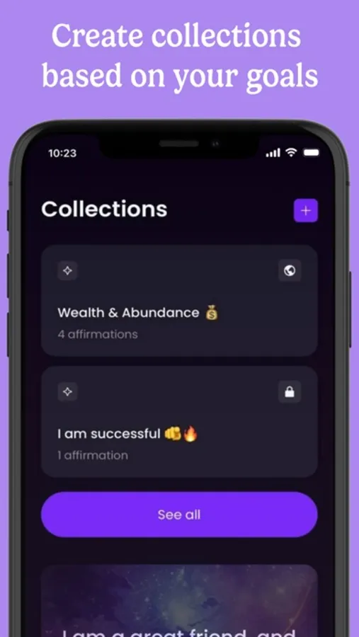 Stay on track with your personal goals, aspirations, and intentions by organizing your affirmations into collections. Easily navigate through your tailored collections to keep your mind aligned with what matters most to you.