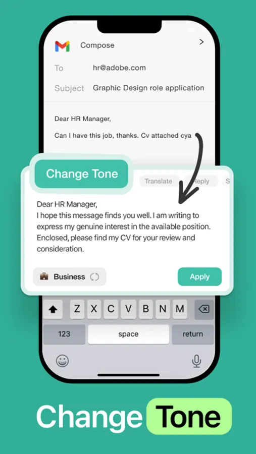 The best part? You can use the AI keyboard in any app on your device.