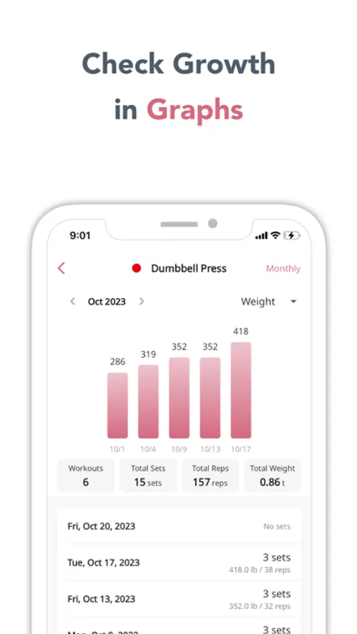 WorkoutLog includes a feature to visualize workout history through graphs. Users can easily understand their training progress at a glance, identifying areas for improvement. Graphical representation facilitates effective adjustments to the workout routine, enabling more efficient training sessions.