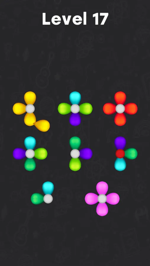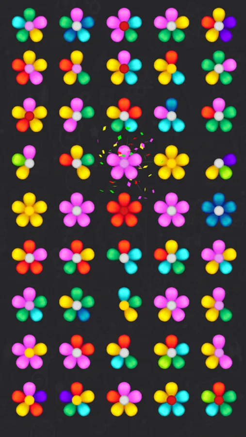Sorting puzzle where you have to sort flowers by colors.