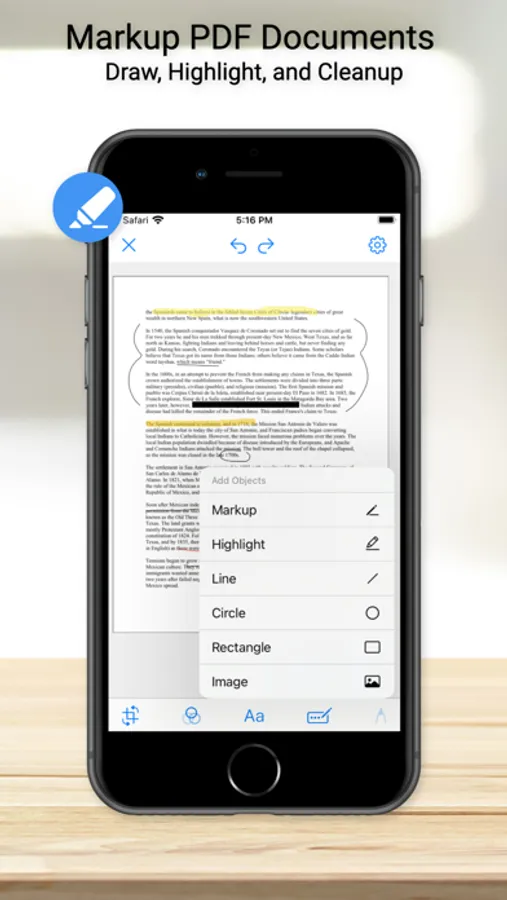 - Mark up documents, change colors, highlight, or add text and input boxes.