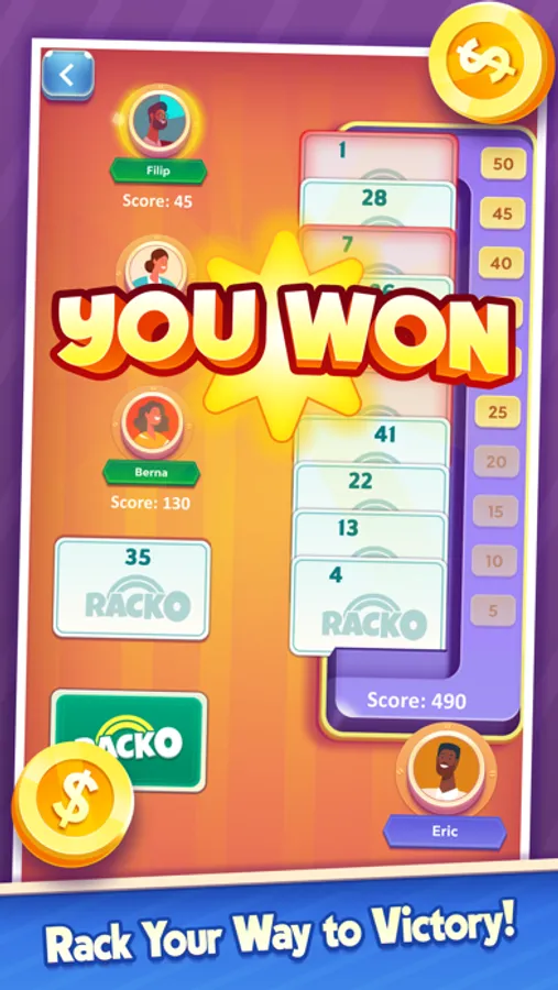 The first player to successfully arrange their 10 cards in their rack in ascending numerical order is declared the winner of the game.