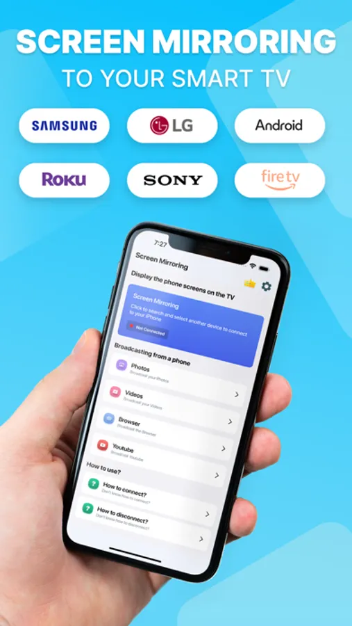 TV Cast - Screen Mirroring allows you to effortlessly pair your iPhone with various Smart TV brands through a simple Wi-Fi connection. This versatile app is compatible with Roku, Samsung, Chromecast, and more, making it an ideal choice for screencasting, screen sharing, and mirroring directly from your phone.