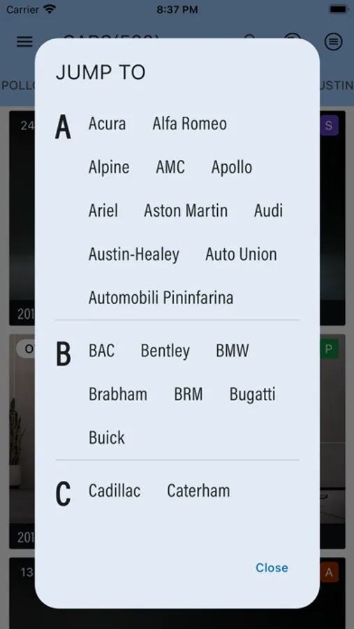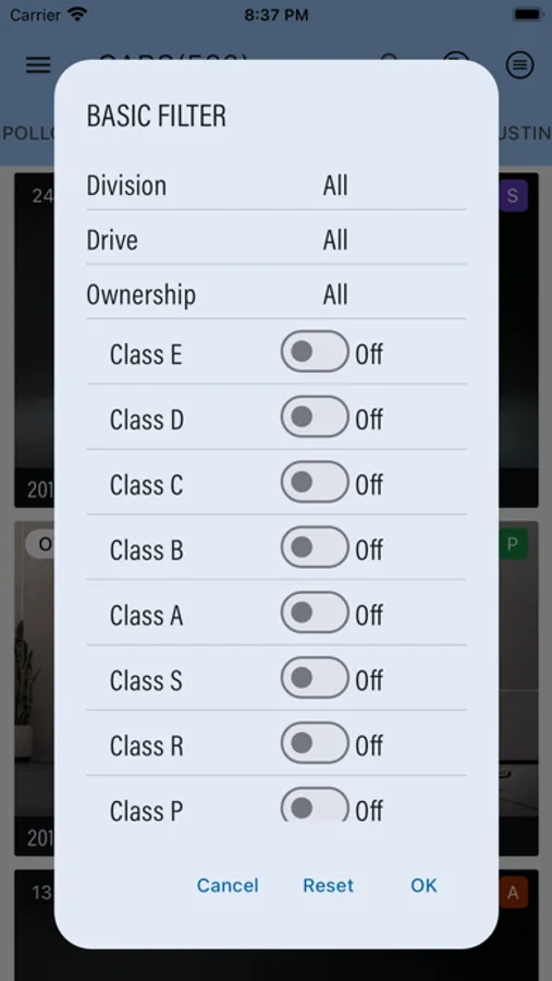 Supports car filter similar to that in the game.