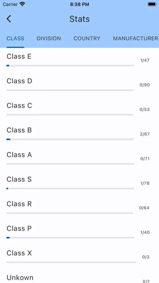 Supports marking cars as owned and counting them in different dimensions.