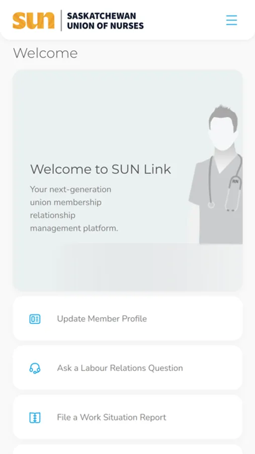 The SUN Link app connects nurses with their union. With access to SUN Link, members can update the profile, connect with representatives, submit labour relation inquiries and works situation reports. The Saskatchewan Union of Nurses represents more then 10,000 dedicated Registered Nurses, Registered Psychiatric Nurses and Nurse Practitioners in Saskatchewan.