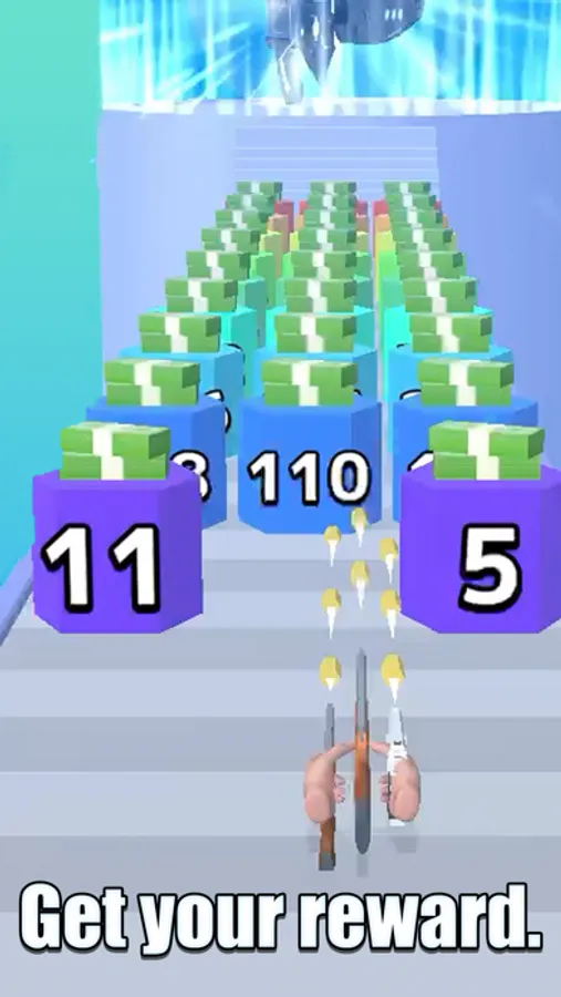 This is a running game where you gather various weapons, defeat enemies, collect money, and rush for the goal!