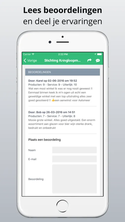 Met de Kringloop App heb je altijd en overal informatie van alle kringloopwinkels in Nederland bij de hand. Ontdek tijdens een dagje winkelen in een andere stad leuke nieuwe kringloopwinkels en ga op zoek bijzondere tweedehands producten. Met de Kringloop App zie je direct de locatie, adresgegevens, openingstijden, een impressie van de winkel en beoordelingen van andere bezoekers.