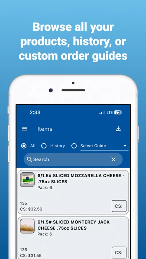 The OrderPro app allows you to search product, review order guides and place orders all from your mobile phone. All order guides, order history, item sequences and par values established from the web portal are reflected and accessible in the app, as the two are always in sync. Whether you're at home, behind the counter or walking through your storage area, the OrderPro app is ready to go for all of your mobile procurement needs.