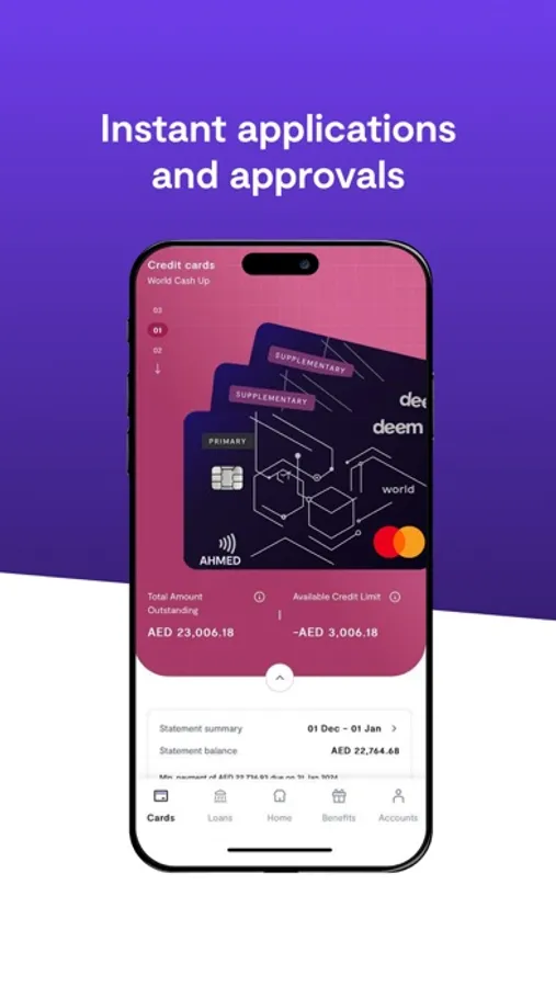Introducing the all-new Deem Mobile App, a new digital experience to effortlessly manage your Deem Credit Card or Personal Loan. We've completely transformed the way you engage with your finances, delivering an unparalleled & intuitive user experience, with access to a wider range of Deem products and services.