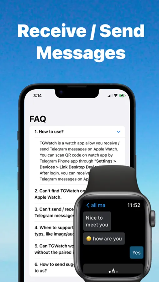 TGWatch allow user receive / send telegram messages on Apple Watch. Because Telegram official client don't have Apple Watch app, so many users don't have chance to use telegram on apple watch. TGWatch is for that.