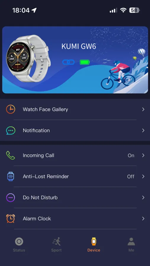 Smart watch binding and pairing: Quickly bind the mobile phone to the KUMI smart watch through simple operations and easily achieve data synchronization.
