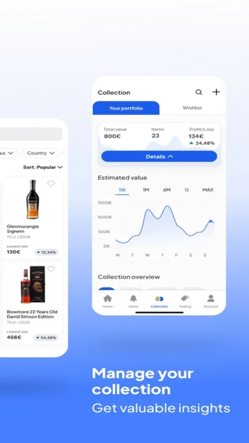 -Upload your collection of whiskey, wine & more in order to track changes in its value and gain valuable statistics and overviews.