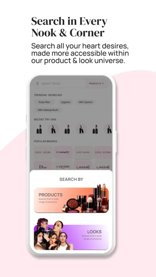 - Search Beauty Products: Easily find top products like foundation, lipstick, concealer, blush, and eyeliner from leading platforms like Nykaa, Tira, Flipkart, Amazon, Purplle, and Myntra.