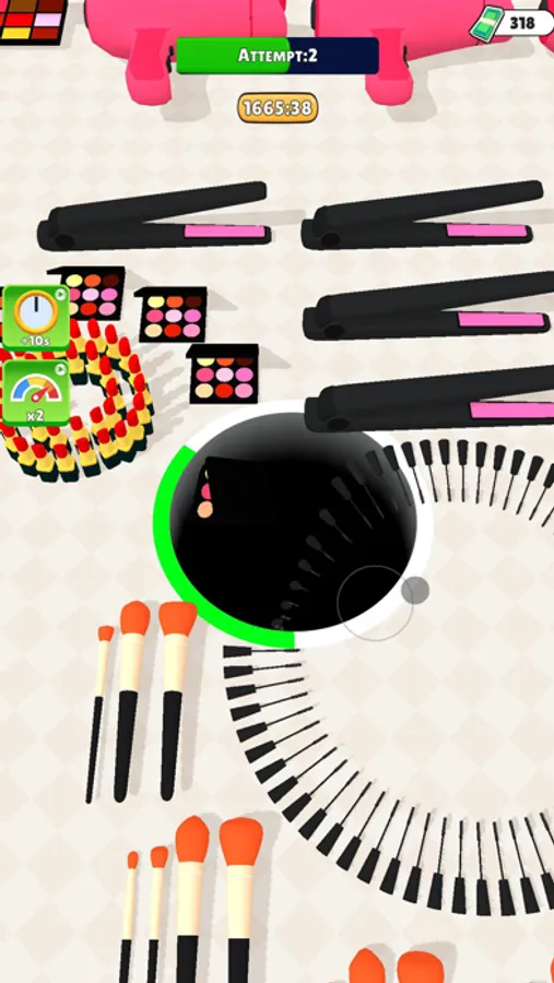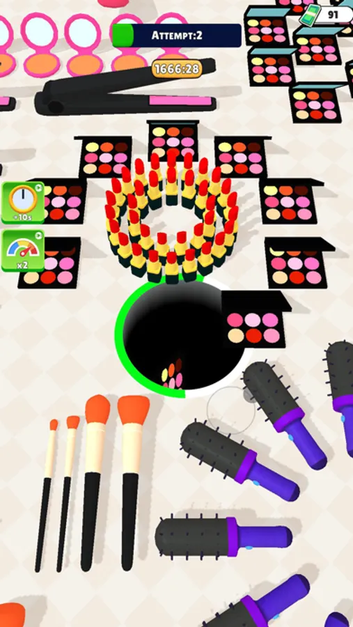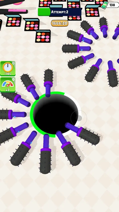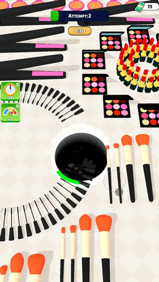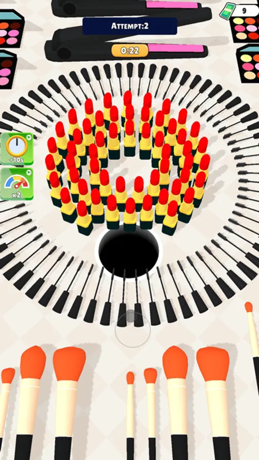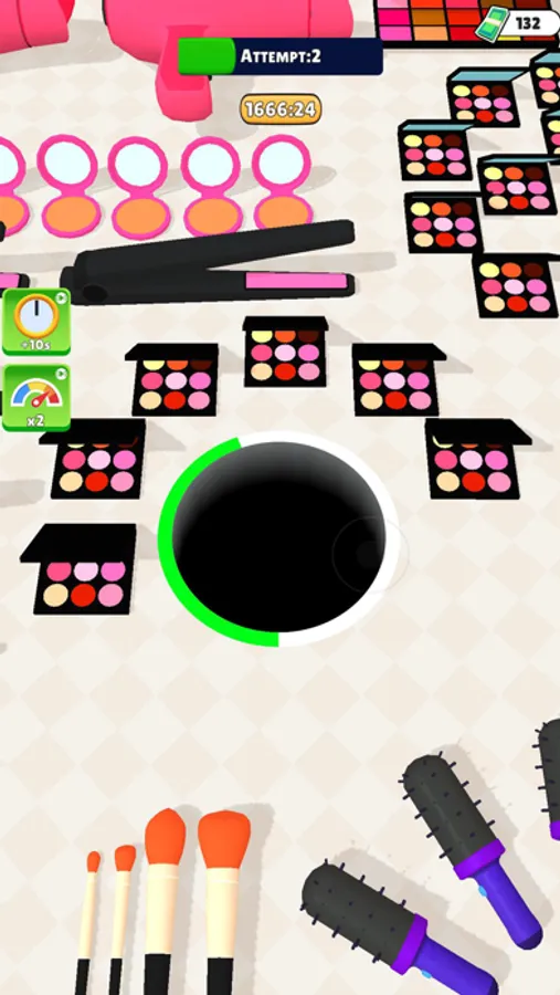 Explore mesmerizing levels filled with a wide range of makeup treasures, from vibrant eyeshadows to luscious lipsticks and radiant blushes. Strategically navigate through the game's challenges, guiding the makeup hole to gather the perfect collection of cosmetics.