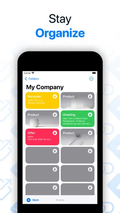 Pasteboard is an app for quick paste. Add all your content using text and media files, and then easily access it through your keyboard. Now it is simple to have your sales scripts, catalogs, prices, FAQ’s, replies and so forth at your hand.
