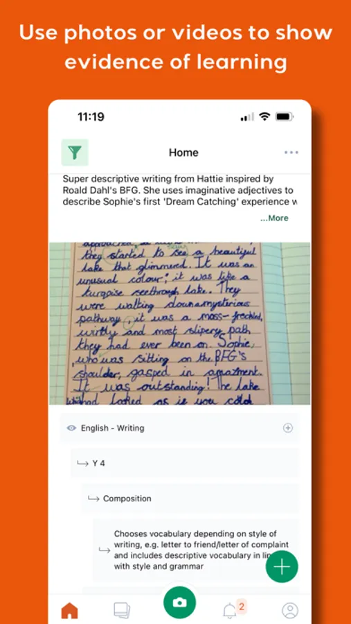 - Capture photos, videos and audio to show evidence of learning.