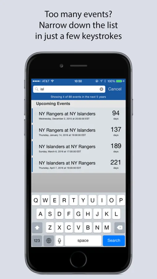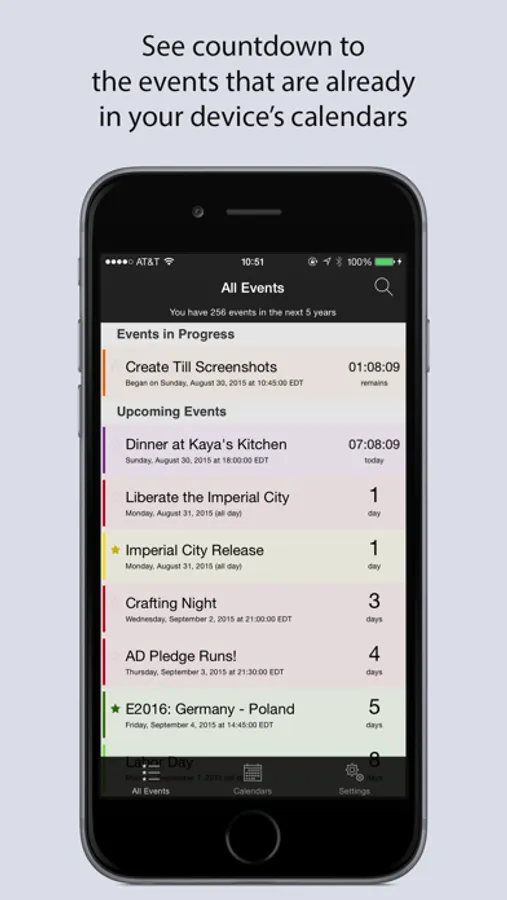 - see a live countdown to events happening today