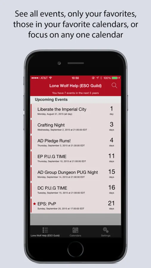 - see all events at once, all events in your favorite calendars, or events in a specific calendar only