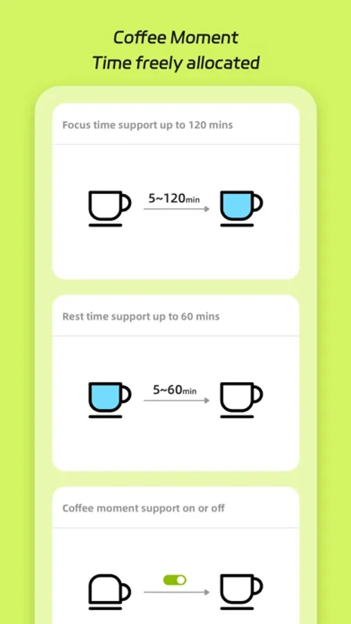 3. Enjoyability: When tired, enjoy a cup of coffee! Represent the Pomodoro timer as a coffee moment. Brewing a cup of coffee takes time, and similarly, savoring it requires a moment of stillness.