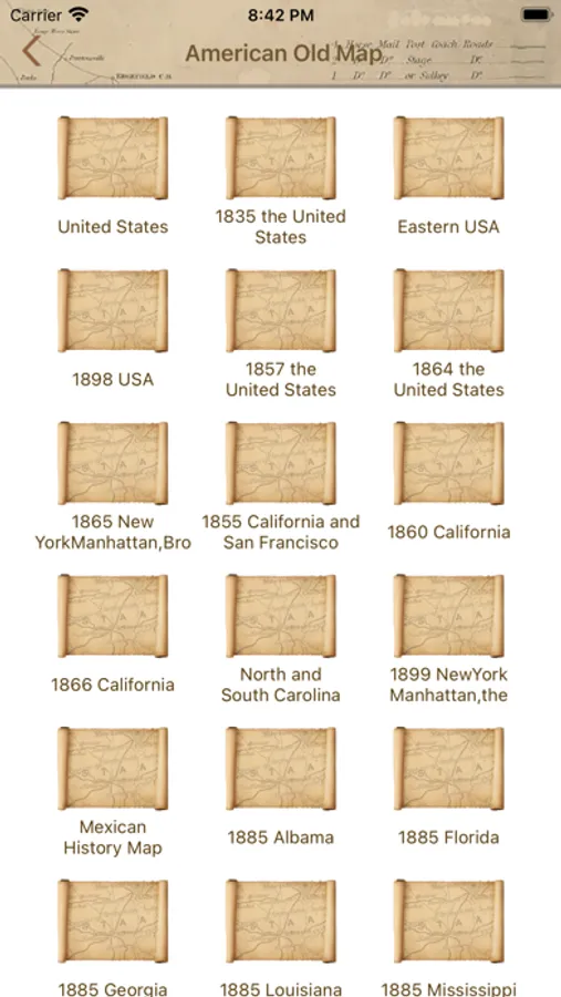 This application is a reference application that contains old maps of the United States, including old maps of the United States in the 19th century and historical maps of the United States in the 1930s. Old maps from the 19th century are available for free. Through this application, you can understand the historical appearance of the United States in the 19th and 20th centuries. It is an auxiliary reference material for understanding the history of the United States.