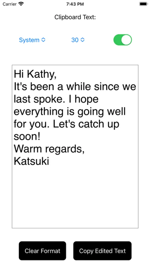 With this app, just by pressing 'Clear Format', you can reset the text's font style. You can also make simple edits.