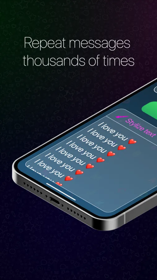 Text Repeater – Your key to originality in the world of words. Unlimited text to spam messages to your friends. Make your text bright, unique, and memorable!