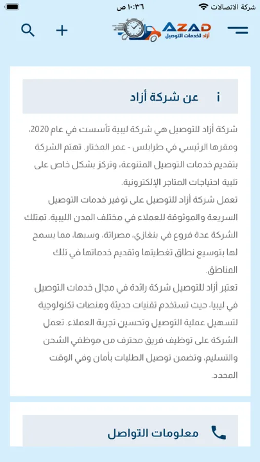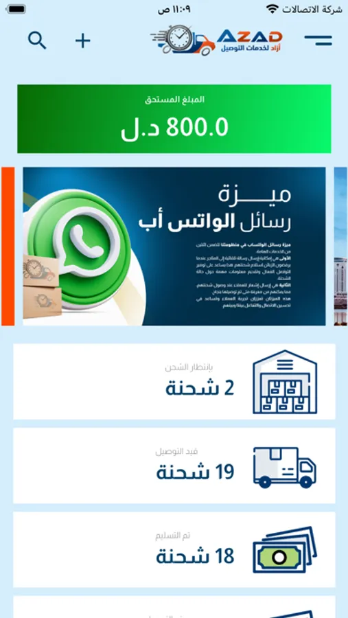 تطبيق أزاد هو تطبيق مبتكر تقدمة شركة أزاد لخدمات التوصيل. يهدف التطبيق إلى تسهيل عملية إدارة الشحنات وتتبعها بسهولة وبساطة للمتاجر. يمكن للمتاجر استخدام التطبيق لإضافة شحناتهم ومتابعة حركتها وتحديث حالتها بكل يسر.